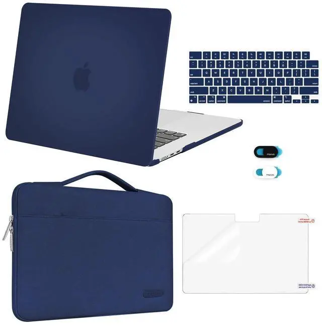 MOSISO Compatible with MacBook Air 15 inch Case 2025 2024 2023 Release M4 A3241 M3 A3114 M2 A2941, Plastic Hard Shell&Carrying Sleeve Bag&Keyboard Cover&Webcam Cover&Screen Protector, Navy Blue