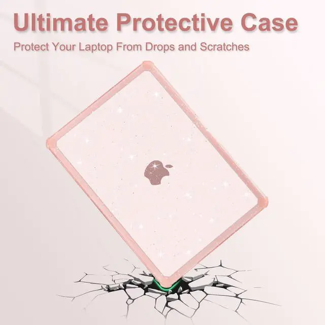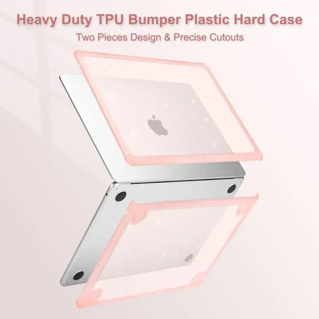 & Touch ID with dimension: 11.97 x 8.46 x 0.44 inch (2022 2023 2024 2025 Released). NO Cut Out design. Precise cut out design allows fully access to all buttons and features. Totally removable, easy to put on and take off. ^^ Engineered, shock-absorbing wraparound TPU bumper on the corners & edges provide ultimate protection for your laptop. The top and bottom case added lots of small glitters, so it will show different color with the difference of light. Sparkly glitter case design makes your laptop more attractive and fashionable all the time. Scratch resistant & anti-fingerprint case protects your laptop from scrapes and scratches. ^^ Including matching color keyboard cover & screen protector to protect your keyboard & screen against spills.