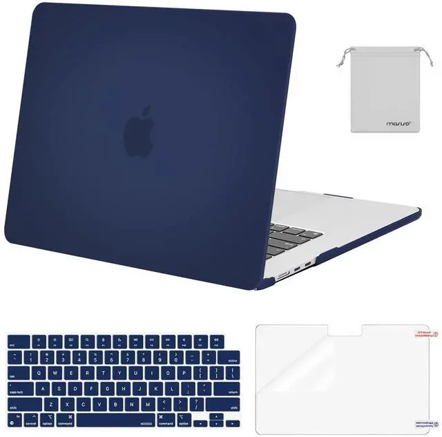 MOSISO Compatible with MacBook Air 15 inch Case M4 M3 M2 2025 2024 2023 Release A3241 A3114 A2941 with Touch ID, Plastic Hard Shell Case&Keyboard Cover&Screen Protector&Storage Bag, Navy Blue
