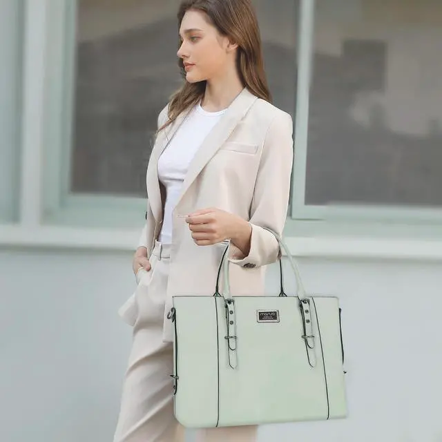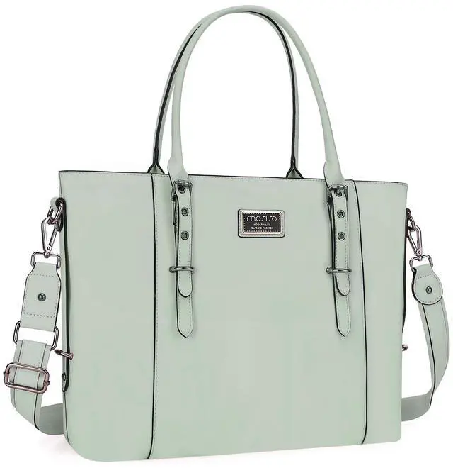 MOSISO PU Leather Laptop Tote Bag for Women (15-16 inch), Waterproof Large Capacity Business Work Briefcase Shoulder Laptop Bag, Sage Green