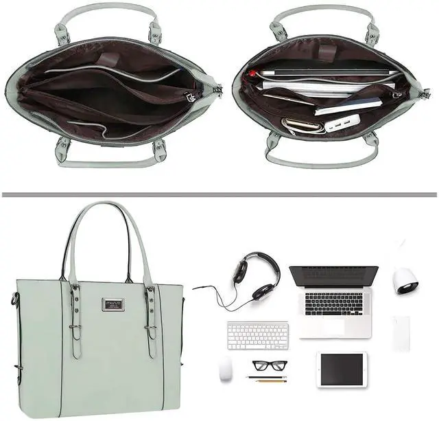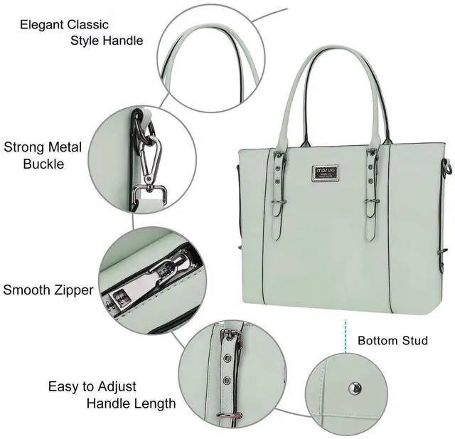 inner zipper compartment dimension: 15.55 x 10.04 inch. ^^ Made of PU leather material, stylish and fashion. Effectively protect your computer from accidental bumps, impacts and scratches. Roomy enough with 3 compartments and 3 pockets for all your daily stuff, keep your items well organized. ^^ With a removable adjustable shoulder strap varied from 31.5 inch to maximum 55.9 inch, it can be used as a crossbody bag as well. Top handle zipper closure, prevent your laptop fall out, the exterior pocket to keep your mobile phone and keys easy and fast access. ^^ This attractive fashionable laptop tote bag is ideal for daily use at shopping, office, business, work, weekend, outdoor activities, travel, gyms, camp, etc. Nice size admirably suits womens and adults. ^^ Compatible with MacBook Air 15 inch M4 A3241 M3 A3114 M2 A2941 2025 2024 2023, compatible with MacBook Pro 16 2025-2019 M4 A3403 A3186 M3 A2991 M2 A2780 M1 A2485 A2141, compatible with MacBook Pro 15 A1990 A1707 A1398; Compatible with Surface Laptop 5/4/3 15, compatible with Surface Book 3/2/1 15; Compatible with Asus ZenBook/VivoBook 15; Compatible with Acer Swift 3/Swift 5/Aspire 3/5/7 15.6; Compatible with HP ProBook/Spectre x360/Envy x360 15.6; compatible with HP Omen/Pavilion x360 15.6.