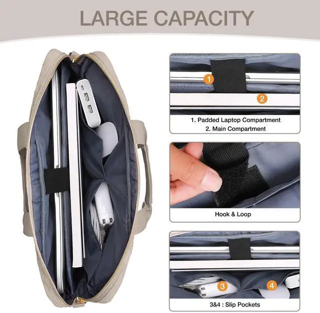 The front 3 zipper pockets provides enough space to keep mouse, earphone, pens and notepads, offering added convenience. Simple and exquisite appearance carrying messenger shoulder bag with pocket is ideal for you to take your laptop out.
