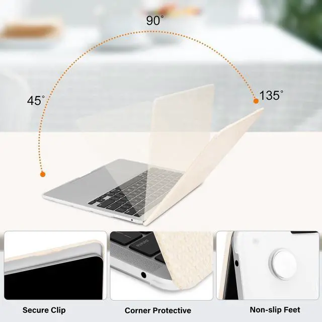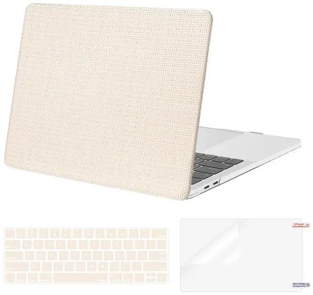 Case dimension: 12 x 8.5 x 0.62 inch, compatible with MacBook Pro 13 inch case with dimension: 11.97 x 8.36 x 0.61 inch (2016 2017 2018 2019 2020 2021 2022 2023 2024 2025 Release). ^^ NO Cut Out design. Precise cutouts case allows fully access to all buttons and features, plug your cable or headset without removing the case. Anti-fingerprint & anti-scratch case protects your valuable laptop from scrapes and scratches. ^^ Fully open over 135 degrees with case on, four silicone feet keep your laptop secure and stable. Two pieces design, totally removable, easy to put on and take off. Exquisite woven grid PU leather coated case design makes your laptop more unique. ^^ Including 2 keyboard covers (compatible with MacBook Pro 13 inch with touch bar 2025 2024 2023 2022 2021 2020 release models M2 M1 A2338 A2251 A2289 and compatible with MacBook Pro 13 inch with touch bar 2019 2018 2017 2016 release models A2159 A1989 A1706) & 1 screen protector to protect your keyboard & screen against spills.