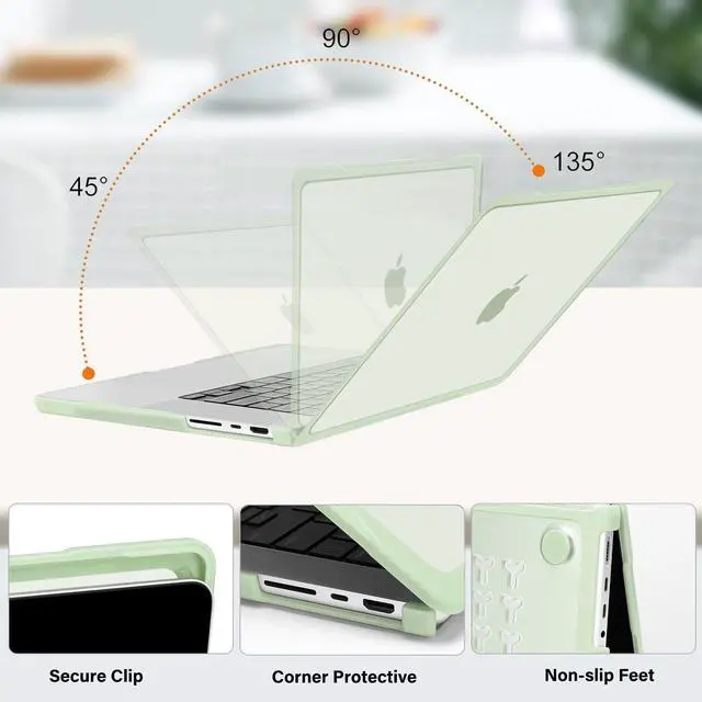 Designed ONLY to be compatible with MacBook Pro 14 inch cover 2025 2024 2023 2023 2021 Release M5 / M4 Max / M4 Pro / M4 / M3 Pro / M3 Max / M3 / M2 Pro / M2 Max / M1 Pro / M1 Max Chip with Liquid Retina XDR Display & Touch ID (models: A3434 & A3112 & A3185 & A3401 & A2918 & A2992 & A2779 & A2442). ^^ Please kindly check the model number "Axxxx" on the back of the laptop before your purchase, make sure you choose the exact same model number as the listing title stated "A3434" or "A3112" or "A3185" or "A3401" or "A2918" or "A2992" or "A2779" or "A2442" that compatible with MacBook Pro M5 14 inch case, compatible with MacBook Pro M4 14 inch case, compatible with MacBook Pro M3 14 inch case, compatible with MacBook Pro M2 14 inch case and compatible with MacBook Pro M1 14 inch case. ^^ NO Cut Out design, semi-transparent case allows logo to shinne through. Fully vented for heat disbursement, fully access to all buttons and features. Totally removable, easy to put on and take off. Matte polycarbonate and TPU frame bumper material offers all-around protection, protect your laptop from scrapes and scratches. ^^ Soft TPU bumper plastic anti-scratch case dimension: 12.48 x 8.93 x 0.62 inch, compatible with MacBook Pro 14 in case M5 A3434 / M4 A3112 A3185 A3401 / M3 A2918 A2992 / M2 A2779 / M1 A2442 Pro / Max Chip with Liquid Retina XDR Display & Touch ID with dimension: 12.31 x 8.71 x 0.61 inch (2025 2024 2023 2022 2021 Released). ^^ Including matching color keyboard cover skin & screen protector to protect your keyboard & screen against spills. The small storage bag keeps mouse and earphone well-organized.