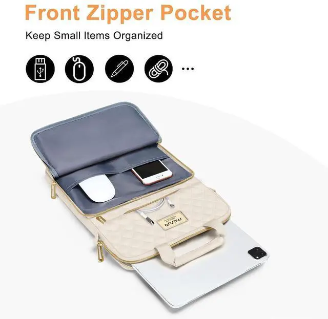 Front raised pocket dimensions: 8.86 x 7.28 inches (L x W). ^^ The main inner compartment for tablet. Extra 2 pockets in front provides enough space to keep mouse, earphone, pens and notepads, offering added convenience. This slim carrying sleeve case cover bag with multi-Pocket is ideal for you to take your tablet out. ^^ Features foam padding layer and fluffy fleece fabric lining for bump and shock absorption and protection of your tablet from accidental scratches. ^^ The square quilted tablet sleeve with pockets outer polyester fabric of the case, top-loading double zippers on the bag glide smoothly and allows convenient access to your tablet. ^^ Compatible with iPad Air 11 M3 2025, iPad A16 2025, iPad Pro 11 M4 2024, iPad Air 11 M2 2024, iPad Pro 11 M2 M1 2022-2018 with Magic Keyboard/Smart Keyboard Folio, iPad 10th 10.9 2022, iPad 9th/8th/7th 10.2 2021/2020/2019, iPad Air 5/4th 10.9 2022/2020, iPad Air 3rd 10.5 2019, iPad Pro 10.5 inch 2017, iPad 9.7 6th/5th 2018/2017, iPad 1/2/3/4, iPad Air / Air 2; Surface Go 2/3 10.5, Surface Go 10 inch 2018; Galaxy Tab A9+/S9/S8/Plus 11, Galaxy Tab A8 10.5, Galaxy Tab A7 10.4 2020, Fire HD 10.