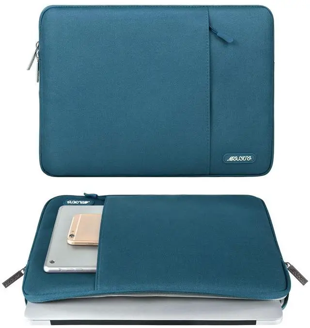 External dimensions: 12.8 x 0.79 x 9.45 inches (L x W x H). The front vertical side pocket dimensions: 9.06 x 8.86 inches (L x W). ^^ Made with polyester material, a top opening zipper gliding smoothly and allows convenient access to your device. Slim and lightweight, does not bulk your device up and can easily slide into your briefcase, backpack or other bag. ^^ Extra pocket in front provides enough space to keep mouse, earphone, pens and notepads, offering added convenience. This protective carrying sleeve case cover bag with pocket is ideal for you to take your laptop notebook computer out. ^^ Features a polyester foam padding layer and fluffy fleece fabric lining for bump and shock absorption and protection of your device against bump, shock and accidental scratches. ^^ Compatible with MacBook Air 11.6 (A1370/A1465), compatible with MacBook 12 A1534; Compatible with Surface Pro 7/6/5/4/3/2/1 12.3; Compatible with Google Pixelbook 12.3; Compatible with Acer Gateway Chromebook 311 11.6; Compatible with Dell Chromebook 11 3100 11.6 /Inspiron 11.6; Compatible with Lenovo 100E Chromebook 11.6 /HD IPS/Yoga 300/Flex 11/130S 11.6; Compatible with Asus Vivobook/Chromebook 11.6; Compatible with HP Stream 11/Chromebook x2 12.3; Compatible with Samsung Chromebook Plus 12.3.