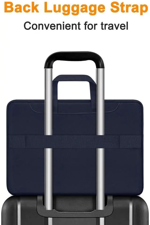 Front horizontal pocket dimensions: 11.81 x 6.23 inches (L x W). ^^ The main inner compartment for laptop or tablet. Front 2 zipper pockets is great for quick-access and store cell phone, pen slots, wallet, keys and other small items. ^^ 360 degree all around protective reinforced interior edge protect your laptop from any accidental dropping. Features foam padding layer and fluffy fleece fabric lining for bump and shock absorption and protection of your computer from accidental scratches. Top-loading double zippers on the bag glide smoothly and allows convenient access to your laptop computer. ^^ Removable and adjustable padding shoulder strap varied from 28.54 - maximum 51.77 inch, top handles also can tuck away in the pockets when not needed. You can use it as shoulder bag, crossbody bag and briefcase in whatever way you like. Considerate design is the back trolley belt for ease use during business trip. ^^ Compatible with MacBook Air 15 inch M4 A3241 M3 A3114 M2 A2941 2025 2024 2023, compatible with MacBook Pro 16 2025-2019 M4 A3403 A3186 M3 A2991 M2 A2780 M1 A2485 A2141, compatible with MacBook Pro 15 A1990 A1707 A1398; Compatible with Surface Laptop 5/4/3 15, compatible with Surface Book 3/2/1 15; Compatible with Asus ZenBook/VivoBook 15; Compatible with Acer Swift 3/Swift 5/Aspire 3/5/7 15.6; Compatible with HP ProBook/Spectre x360/Envy x360 15.6; compatible with HP Omen/Pavilion x360 15.6.