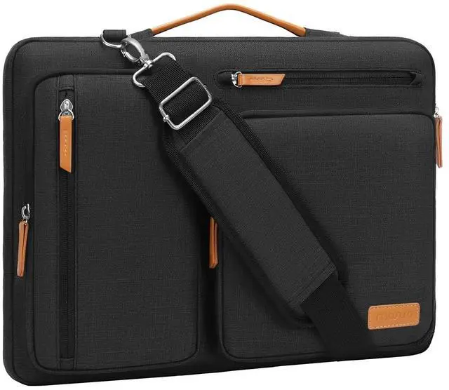 MOSISO 360 Protective Laptop Shoulder Bag,15 inch Computer Bag Compatible with MacBook Air M4 M3 M2/Pro A1990 A1707, Dell XPS Plus,Side Open Messenger Bag with 4 Zipper Pockets&Handle, Black
