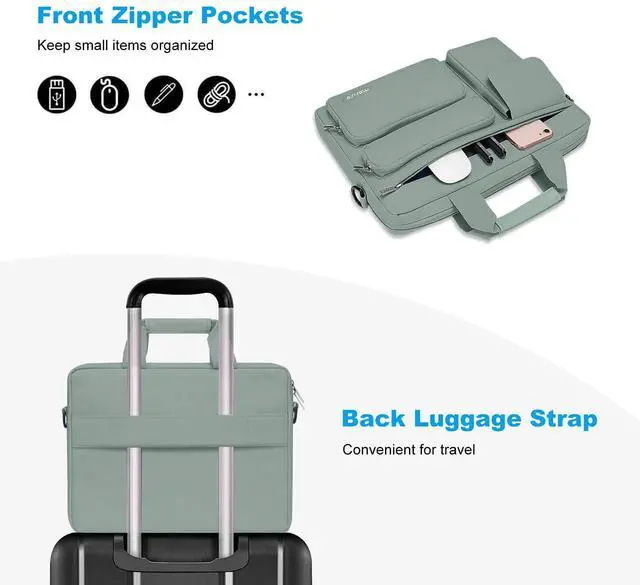 Why should take this bag? This MOSISO polyester laptop shoulder bag with 2 raised & 1 flapover & 1 horizontal pockets & fix handle & trolley belt offers a simple and yet fashionable way to protect your laptop or notebook computer while you are on the go.