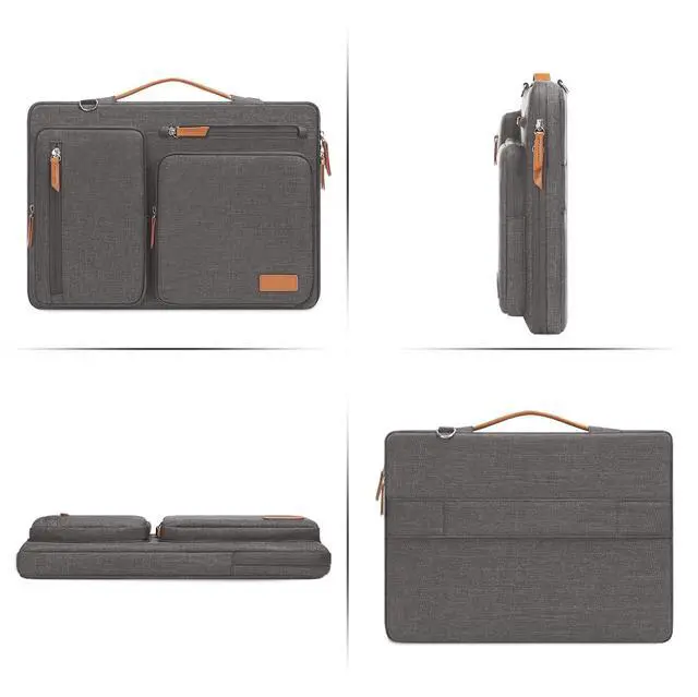 Vertical pocket dimensions: 7.48 x 4.13 inches (L x W). ^^ The main inner compartment for laptop or tablet. Front 4 zipper pockets is great for quick-access and store cell phone, pen slots, wallet, keys and other small items. ^^ 360 degree all around protective reinforced interior edge protect your laptop from any accidental dropping. Features foam padding layer and fluffy fleece fabric lining for bump and shock absorption and protection of your computer from accidental scratches. Side opening double zippers on the bag glide smoothly and allows convenient access to your laptop computer. ^^ Removable and adjustable padding shoulder strap with a shoulder pad varied from 28.54 inch to maximum 52.56 inch. Extendable PU handle design makes it to carry your laptop around in comfort, you can also tuck away the handle. Considerate design is the back trolley suitcase belt for ease use during business trip. It is really convenient for your happy journey to any where. ^^ Compatible with MacBook Air 15 inch M4 A3241 M3 A3114 M2 A2941 2025 2024 2023, compatible with MacBook Pro 15 inch A1990 A1707; Compatible with Surface Laptop 5/4/3 15 inch; Compatible with Dell XPS 15/Vostro/Chromebook 15; Compatible with Acer Swift 7/Switch 7/Swift 5/Aspire One Cloudbook 14; Compatible with Lenovo ThinkPad X1 Yoga, compatible with Lenovo ThinkPad T-Series/E-Series/Ideapad/Flex 14; Compatible with HP Probook/ZBook/SlateBook/EliteBook 14.