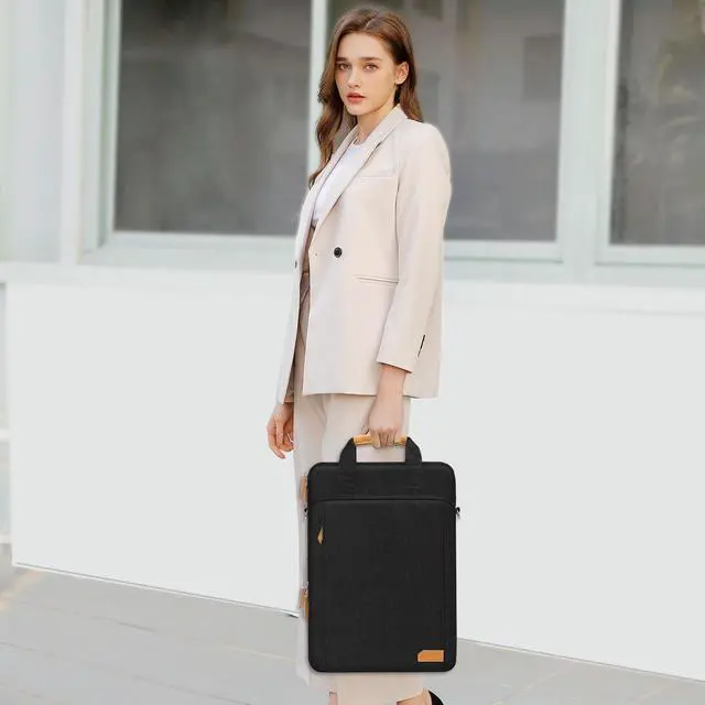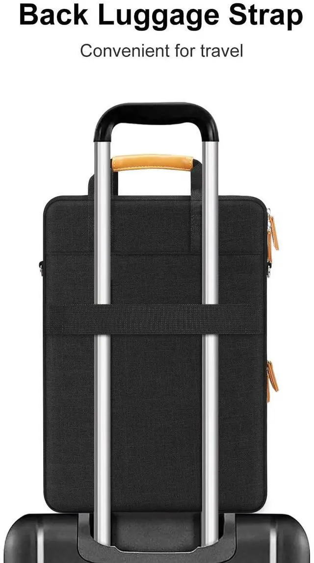 Back pocket dimensions: 12.40 x 9.45 inches (L x W). ^^ The main inner compartment for laptop or tablet. Extra pocket in front and back provides enough space to keep mouse, earphone, pens and notepads, offering added convenience. This slim carrying sleeve case cover bag with multi-pocket is ideal for you to take your tablet out. ^^ 360 degree all around protective reinforced interior edge protect your tablet from any accidental dropping. Features foam padding layer and fluffy fleece fabric lining for bump and shock absorption and protection of your computer from accidental scratches. ^^ Top-loading double zippers on the bag glide smoothly and allows convenient access to your laptop computer. Fixed PU handle design makes it to carry your laptop around in comfort. Considerate design is the back trolley suitcase belt for ease use during business trip. It is really convenient for your happy journey to any where. ^^ Compatible with MacBook Air 15 inch M4 A3241 M3 A3114 M2 A2941 2025 2024 2023, compatible with MacBook Pro 16 2025-2019 M4 A3403 A3186 M3 A2991 M2 A2780 M1 A2485 A2141, compatible with MacBook Pro 15 A1990 A1707 A1398; Compatible with Surface Laptop 5/4/3 15, compatible with Surface Book 3/2/1 15; Compatible with Asus ZenBook/VivoBook 15; Compatible with Acer Swift 3/Swift 5/Aspire 3/5/7 15.6; Compatible with HP ProBook/Spectre x360/Envy x360 15.6; compatible with HP Omen/Pavilion x360 15.6.