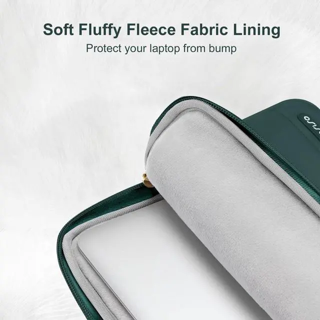 • Made with soft touch puffy polyester material, features a polyester foam padding layer and fluffy fleece fabric lining. Protect your laptop from bump, shock and accidental scratches.