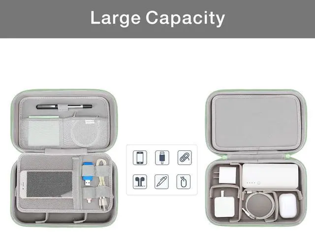 Internal Dimensions: 9.25 x 5.9 x 2.56 inches (L x W x H). Packing including 1 hard case, 1 moving interlayer, 1 snap hook, 2 cable tie, 4 modular inserts. ^^ Made of durable EVA material with PU leather exterior, shockproof, dustproof and waterproof. Soft velvet filled interior can prevent your electronic accessories from scratch and damage. ^^ Full open design. 2 mesh pockets and pencil elastic band on the moving interlayer. You can paste it on the top or intermediate on the fix interlayer. Zipper mesh pocket and 4 elastic band on the fix interlayer. 4 removable modular inserts in the compartment is designed as customized dividers for different electronics accessories. Customer can adjust the space based on their needs. ^^ Double zippers on the carrying case glide smoothly and allows convenient access to your electronic accessories and other accessories. ^^ This multifunctional electronics carrying case storage bag is designed to be compatible with MacBook power adapter, compatible with Magic Mouse & Pencil, compatible with AirPods, SD card, cable, charge, power bank, USB flash disk and other accessories.