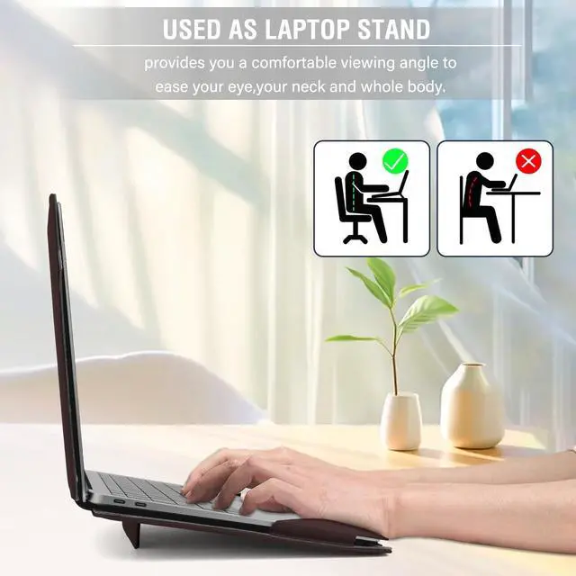 Our PU leather portfolio stand case with clear straps at the top corners, magnetic closure and soft interior provide a good protection for your laptop.