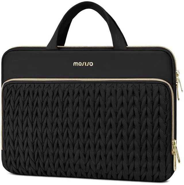 MOSISO 15.6 inch Laptop Case, 15-16 inch Laptop Sleeve Compatible with MacBook Pro 16 M4 M3 M2 M1, HP Dell Acer Lenovo ASUS Notebook, Wheat Ear Quilted Carrying Bag Cover with Handle&Pocket, Black