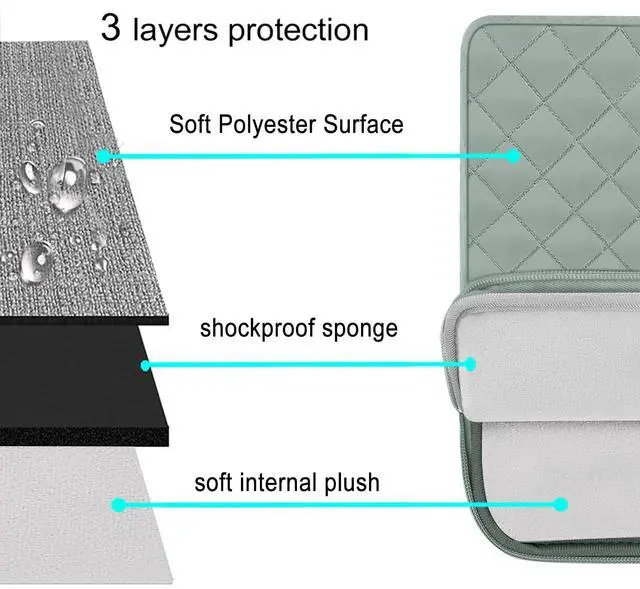 Made with square quilted polyester material, a top opening zipper gliding smoothly and allows convenient access to your device. Slim and lightweight, does not bulk your device up and can easily slide into your briefcase, backpack or other bag.