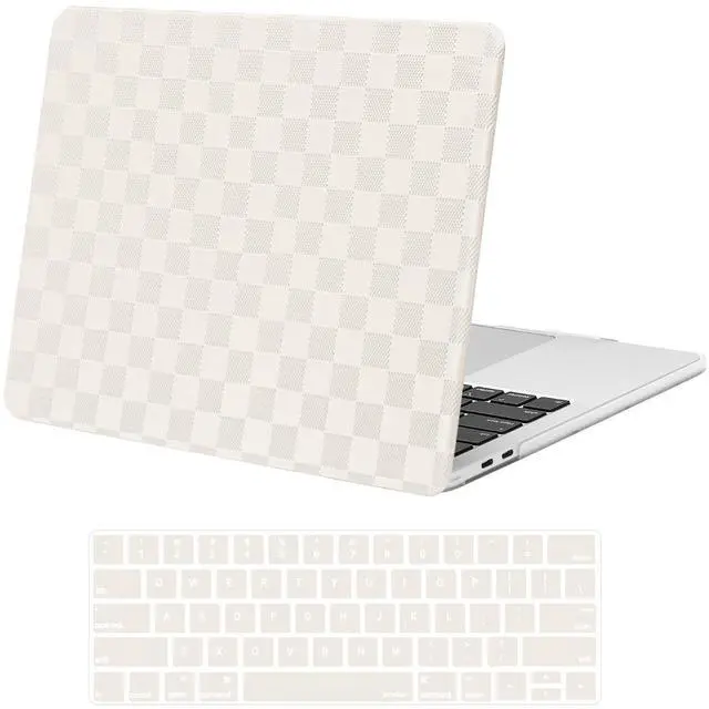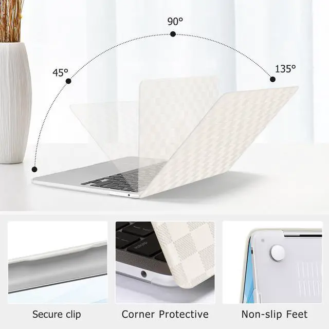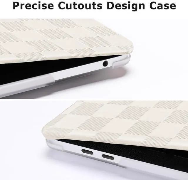 Touch ID with dimension: 11.97 x 8.36 x 0.59 inch (2016 2017 2018 2019 2020 2021 2022 2023 2024 2025 Release). NO Cut Out design. Precise cutouts case allows fully access to all buttons and features, plug your cable or headset without removing the case. Anti-fingerprint & anti-scratch case protects your valuable laptop from scrapes and scratches. ^^ Fully open over 135 degrees with case on, four silicone feet keep your laptop secure and stable. Two pieces design, totally removable, easy to put on and take off. Exquisite checker texture grid PU leather coated case design makes your laptop more unique. ^^ Including 2 keyboard covers (compatible with MacBook Pro 13 inch with touch bar 2025 2024 2023 2022 2021 2020 release models M2 M1 A2338 A2251 A2289 and compatible with MacBook Pro 13 inch with touch bar 2019 2018 2017 2016 release models A2159 A1989 A1706) to protect your keyboard against spills.