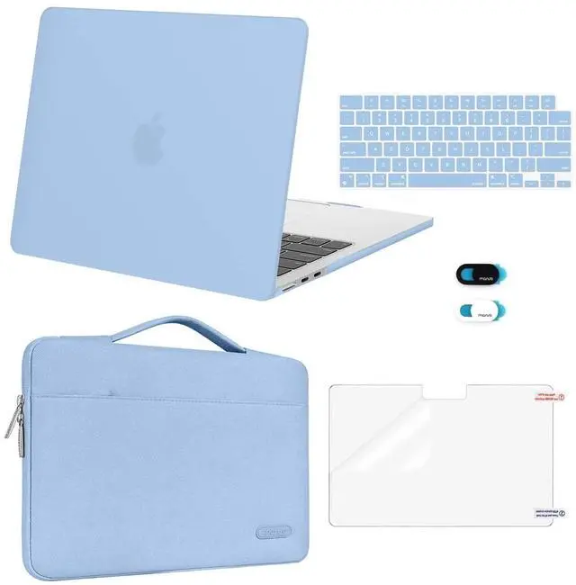 MOSISO Compatible with MacBook Air 13 inch Case 2025 2024 2023 2022 M4 A3240 M3 A3113 M2 A2681, Hard Shell&Sleeve Bag&Keyboard Skin&Webcam Cover&Screen Film for MacBook Air 13.6 inch, Air Blue