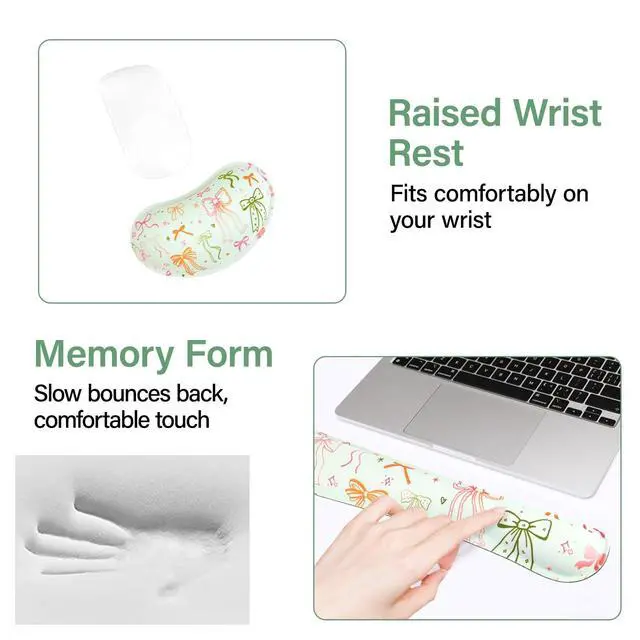Dimension of large gaming mouse pad: 35.43 x 15.75 inch; dimension of keyboard wrist rest: 17.32 x 3.15 inch; dimension of mouse wrist rest support: 5.39 x 2.98 inch; dimension of coaster: 3.9 inch (diameter). Fits all mouse/keyboard. Compatible with MacBook / Notebook / Chromebook / Ultrabook / Desktop / PC, also compatible with iMac. ^^ This mouse wrist support and keyboard wrist rest are ergonomically designed with breathable neoprene cloth and memory foam. Efficient for easy typing & pain relief. This wrist pad for keyboard provides soft support to relieve pressure and pain of your wrist, keep your wrist in a natural and comfortable state. ^^ This large mousepad will provide you enough space to operate your computer mouse and keyboard, also can decorate your desktop. Unique patterns showcase your personal style. Offer good protection for your desk, prevent it from scratches, impact, stains, dirty, spills, wear and scuffs. Easy to use and clean. ^^ Edges is reinforced to endure long-time use. The filled cushion part will slowly rebound when leave it, not easy to deform. Well designed to prevent the wrist fatigue and pain when you work long hours. One cup coaster is included to meet more your needs. ^^ Non-slip base can firmly grasp the desk to prevent sliding or any unintentional movement.