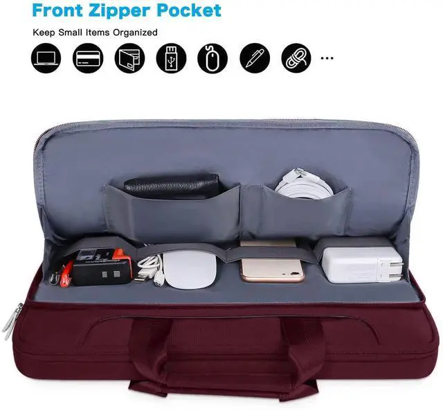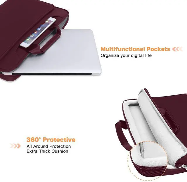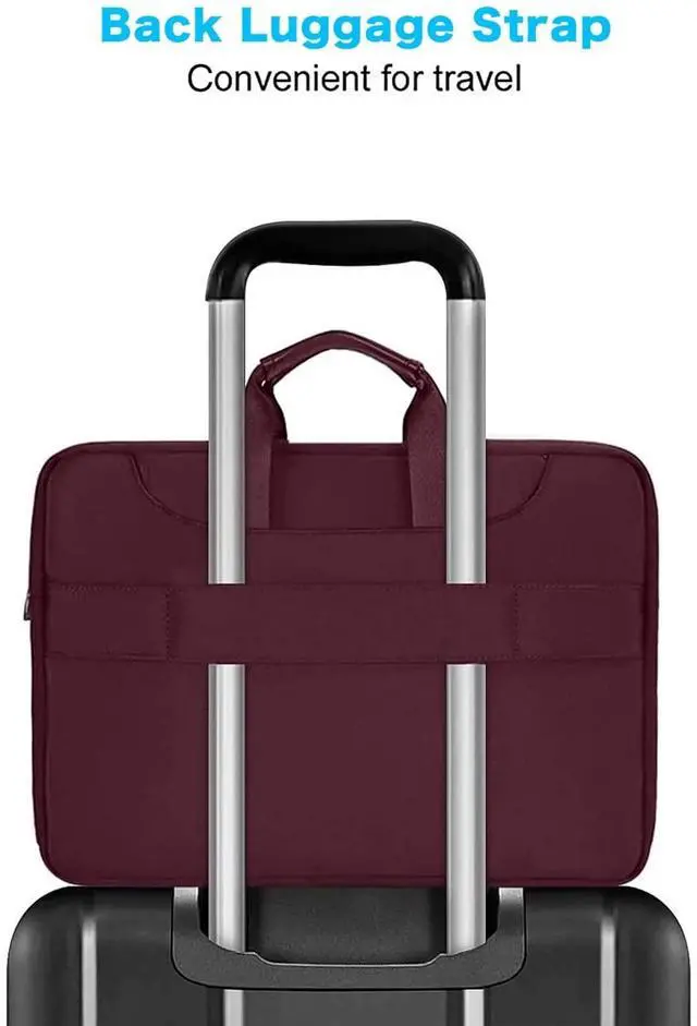External Dimensions: 14.96 x 1.39 x 10.63 inch (L x W x H). The front horizontal side pocket dimensions: 13.78 x 7.68 inch (L x W). ^^ 360 degree all around protective reinforced interior edge protect your laptop from any accidental dropping. Features foam padding layer and fluffy fleece fabric lining for bump and shock absorption and protection of your computer from accidental scratches. Top-loading double zippers on the bag glide smoothly and allows convenient access to your laptop computer. ^^ Matching color removable and adjustable padding shoulder strap varied from 29.5 - maximum 52.3 inch, top handles also can tuck away in the pockets when not needed. Large front pocket with inner small pocket keep all your daily accessories well organized. Proviode enough space to keep mouse, pens, mobile phone, cables, cards and other small accessories. ^^ You can use it as shoulder bag, briefcase bag and sleeve bag in whatever way you like. Back luggage strap allows bag to slide over the luggage tube, secure your bag in place, provides a convenient way to carry the bag and release your shoulder. ^^ Compatible with MacBook Pro 14 2025-2021 M5 A3434 M4 A3112 A3185 A3401 M3 A2918 A2992 M2 A2779 M1 A2442, compatible with MacBook Air 13 2017-2010 A1369 A1466, compatible with MacBook Pro 13 A1425 A1502 A1278 2008-2015; Compatible with Surface Book 3/2/1 13.5 /Surface Laptop 6/5/4/3 13.5 /Surface Laptop 13.8; Compatible with Dell Latitude/Chromebook 13.3; Compatible with HP Elitebook/Spectre/Envy/Stream 13.3; Compatible with Lenovo IdeaPad/ThinkPad 13.3; Compatible with Acer Chromebook 13.3.