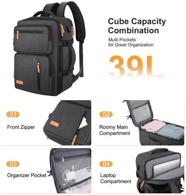 DescriptionThis 40L travel backpack with 3 packing cubes is suitable for a wide range of uses. The large cube for sweaters, thin coat, pants. Medium cube for shirts. Small water resistant cube with transparent side for providing clear overview of toiletries. Can be use as a travel backpack, college backpack, commuting backpack, work backpack and carry on backpack, meet all your daily carry potential, roomy enough for travel accessories.