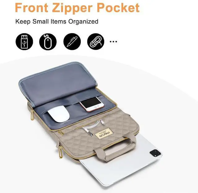 Front raised pocket dimensions: 10.04 x 7.87 inches (L x W). ^^ The main inner compartment for tablet. Extra 2 pockets in front provides enough space to keep mouse, earphone, pens and notepads, offering added convenience. This slim carrying sleeve case cover bag with multi-Pocket is ideal for you to take your tablet out. ^^ Features foam padding layer and fluffy fleece fabric lining for bump and shock absorption and protection of your tablet from accidental scratches. ^^ The square quilted tablet sleeve with pockets outer polyester fabric of the case, top-loading double zippers on the bag glide smoothly and allows convenient access to your tablet. ^^ Compatible with 13 inch iPad Air M3 2025, 13 inch iPad Air M2 2024, 13 inch iPad Pro M4 2024, iPad Pro 12.9 M2/M1 2022/2021, iPad Pro 12.9 3rd / 4th Gen 2018-2020 with Magic Keyboard/Smart Keyboard Folio, iPad Pro 12.9 2st Gen 2017, iPad Pro 12.9 1st Gen 2015, Surface Pro X, Surface Laptop Go 12.4, Surface Pro 7/Surface Pro 6 12.3 /Surface Pro 4/Surface Pro 3/Surface Pro LTE 12.3 inch, Galaxy Tab S9+ 12.4 2023, Galaxy Tab Pro S 12.2, Galaxy Tab S8+ 12.4, MateBook 12.