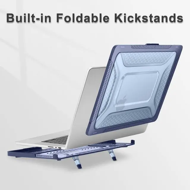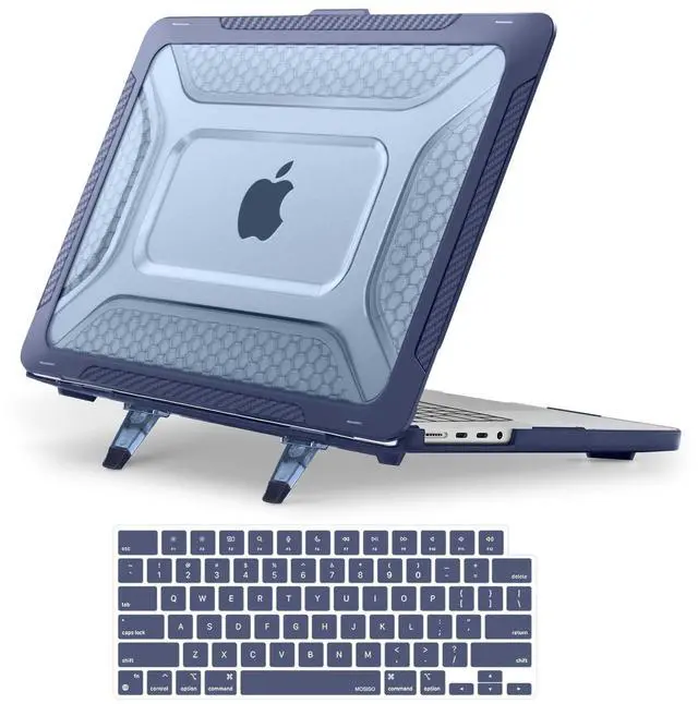 PC case dimension: 14.05 x 9.81 x 0.7 inch, compatible with MacBook Pro M4 16 inch case, compatible with MacBook Pro M3 16 inch case, compatible with MacBook Pro M2 16 inch case and compatible with MacBook Pro M1 16 inch case (models: A3403 & A3186 & A2991 & A2780 & A2485) Pro Max Chip with Liquid Retina XDR Display & Touch ID with dimension: 14.01 x 9.77 x 0.66 inch (2025 2024 2023 2022 2021 Released). ^^ The built-in foldable kickstands provide an appropriate ergonomic viewing & typing angle, give you a better visual experience. Engineered shock-absorbing beveled ridges honeycomb design wraparound TPU bumper heavy duty hard shell, provides ultimate protection for your laptop against scratches, drops, accidental scuffs and other damages. ^^ NO Cut Out design. Fully vented for heat disbursement, fully access to all buttons and features. Totally removable, easy to put on and take off that will not add any risk of harming your laptop during application. This comfortable protective hard shell case can be used for daily, office, home, travelling, working & study, shock-absorbent, anti-cracking, anti-fingerprint and anti-scratch. ^^ Including keyboard cover to protect your keyboard against spills.