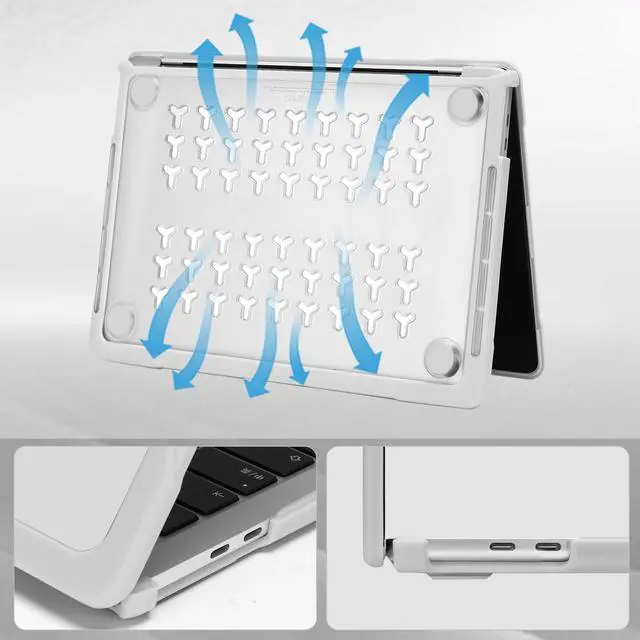 NO Cut Out design, transparency is different from color to color. ^^ NO Cut Out design, semi-transparent case allows logo to shinne through. Fully vented for safe heat disbursement, fully access to all buttons and features. Totally removable, easy to put on and take off. Matte polycarbonate and TPU frame bumper material offers all-around protection, protect your laptop from scrapes and scratches. ^^ Soft TPU bumper plastic anti-scratch case dimension: 12 x 8.5 x 0.6 inch, compatible with MacBook Pro 13 inch with/without Touch Bar and