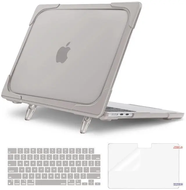 ^^ WARNING: This case is NOT compatible with other model laptops. Please kindly check the model number "Axxxx" on the back of the laptop before your purchase, make sure you choose the exact same model number as the listing title stated "A3240" or "A3113" or "A2681" that be compatible with MacBook Air 13 inch case M4 & compatible with MacBook Air 13 inch case M3 & compatible with MacBook Air 13 inch case M2. ^^ Engineered shock-absorbent beveled ridges design bumper heavy duty hard shell, provides ultimate protection for your laptop against accidental scuffs, drops and scratches. No cut out design, translucent case allowing logo to shine through. Fully vented for heat disbursement, fully access to all buttons and features. Totally removable, easy to put on and take off. ^^ The built-in foldable kickstands provide an ergonomic typing angle, also give you a better visual experience. ^^ Including keyboard cover & screen protector to protect your keyboard & screen against spills.