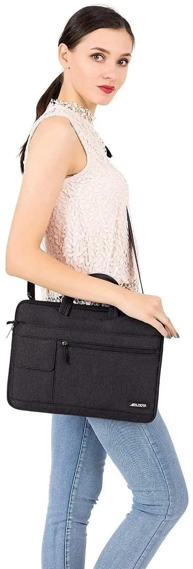 External Dimensions: 16.73 x 0.98 x 12 inches (L x W x H). ^^ Front flap pocket with hook and loop fasteners closure is great for quick-access items, secure and convenient. Such as cell phone and pens, wallet, keys and other small items. This protective messenger shoulder bag carrying briefcase handbag sleeve case cover bag with pocket is ideal for you to take your laptop out. ^^ Features a polyester foam padding layer and fluffy fleece fabric lining for bump and shock absorption and protection of your computer from accidental scratches. Top-loading zipper on the bag glides smoothly and allows convenient access to your laptop computer. ^^ Removable and adjustable padding shoulder strap varied from 27 inch to maximum 48 inch and dual sturdy handles for long time comfortably carrying, top handles also can tuck away in the pockets when not needed. ^^ Compatible with MacBook Pro 16 inch 2023-2021 M3 A2991 M2 A2780 M1 A2485 Pro/Max Touch ID, compatible with MacBook Pro 16 A2141 2019 2020, compatible with MacBook Pro Retina 15.4 A1398; Compatible with Surface Book 3/2/1 15; Compatible with Asus ZenBook/VivoBook 15; Compatible with Acer Swift 3 14/Swift 5 15.6, compatible with Acer Aspire 3/5/7 15.6; Compatible with HP ProBook/Spectre x360/Envy x360 15.6; compatible with HP Omen/Pavilion x360 15.6; Compatible with Dell XPS/Vostro/Latitude 15.