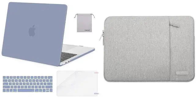 MOSISO Compatible with MacBook Pro 13 inch Case 2022-2016 A2338 M1 A2289 A2251 A2159 A1989 A1706 A1708, Plastic Hard Case&Vertical Sleeve&Keyboard Skin&Screen Protector&Storage Bag,Lavender Gray&Gray
