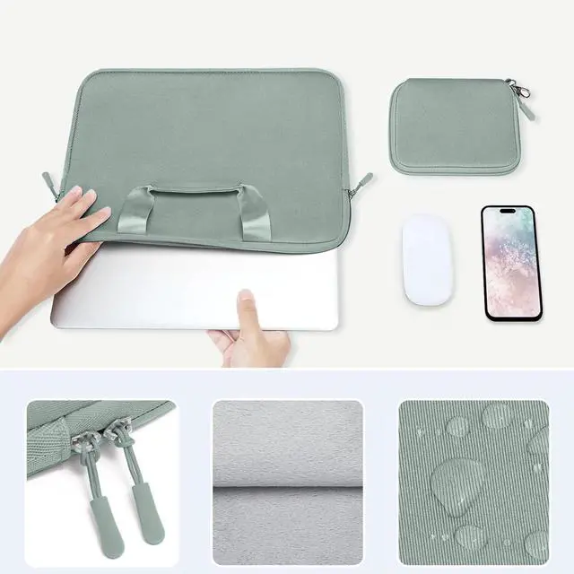 H); external dimension is: 6.3 x 0.59 x 5.31 inch (L x W x H). ^^ Features a neoprene foam padding layer and fluffy fleece fabric lining for bump and shock absorption and protection of your computer from accidental scratches. ^^ Additional detachable small storage pouch bag for you to storage mouse and earphone. Same color as the big sleeve bag, harmony and stylish. This protective carrying sleeve case cover bag with small pouch is ideal for you to take your laptop out. ^^ Slim and lightweight; does not bulk your laptop up and can easily slide into your briefcase, backpack, or other bag. Portable PU handle design makes it to carry your laptop around in comfort. ^^ Compatible with MacBook Pro 16 inch 2025-2021 M4 A3403 A3186 M3 A2991 M2 A2780 M1 A2485 Pro Max Touch ID, compatible with MacBook Pro 16 A2141 2019 2020, compatible with MacBook Pro Retina 15.4 A1398; Compatible with Surface Book 3/2/1 15; Compatible with Asus ZenBook/VivoBook 15; Compatible with Acer Swift 3 14/Swift 5 15.6, compatible with Acer Aspire 3/5/7 15.6; Compatible with HP ProBook/Spectre x360/Envy x360/HP Omen/Pavilion x360 15.6; Compatible with Dell XPS/Vostro/Latitude 15.