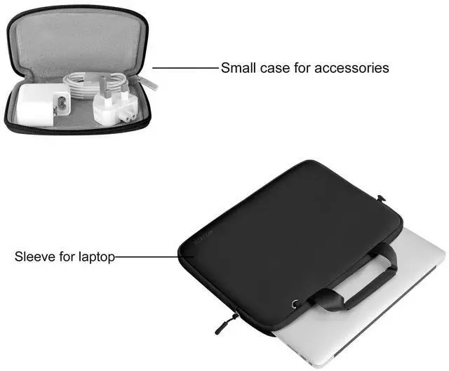 Additional detachable small storage pouch bag for you to storage mouse and earphone. Same color as the big sleeve bag, harmony and stylish. This protective carrying sleeve case cover bag with small pouch is ideal for you to take your laptop out.