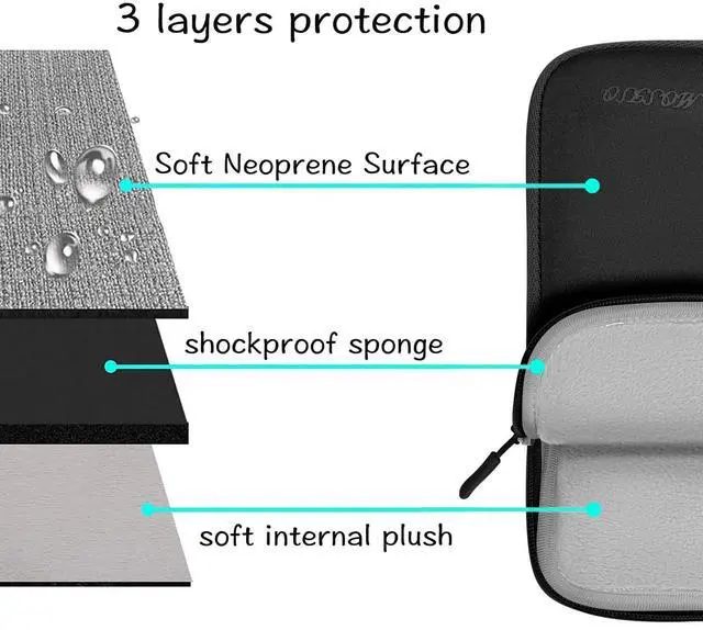Features a neoprene foam padding layer and fluffy fleece fabric lining for bump and shock absorption and protection of your computer from accidental scratches.