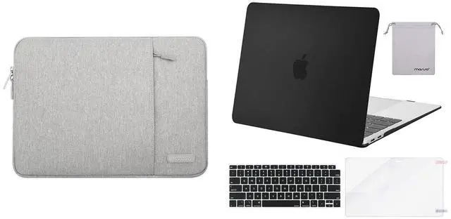 MOSISO Compatible with MacBook Air 13 inch Case 2022-2018 Release A2337 M1 A2179 A1932, Plastic Hard Shell&Vertical Sleeve Bag&Keyboard Cover&Screen Protector&Storage Bag, Black&Gray
