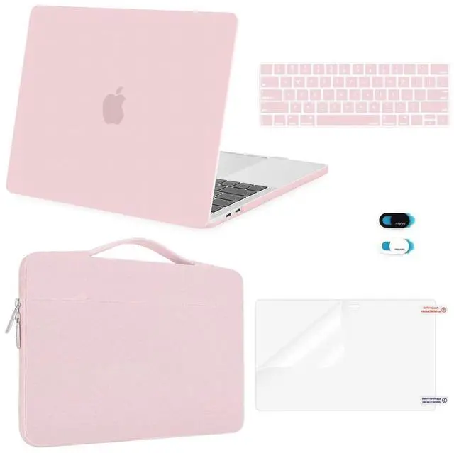 MOSISO Compatible with MacBook Pro 13 inch Case M2 2025, 2024, 2023-2016 A2338 M1 A2251 A2289 A2159 A1989 A1708 A1706, Plastic Hard Case&Bag&Keyboard Skin&Webcam Cover&Screen Protector, Rose Quartz