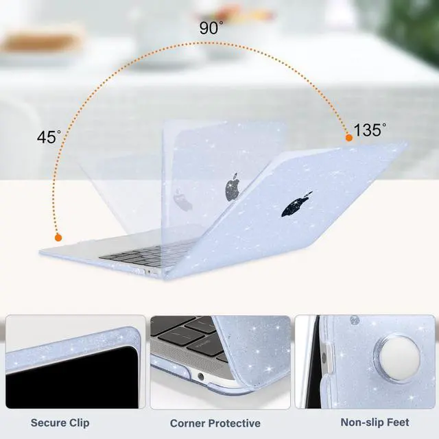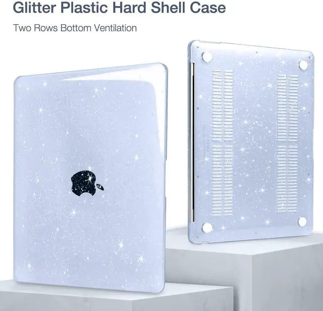 Glitter sparkly case dimension: 12 x 8.5 x 0.62 inch, compatible with MacBook Air 2018 case, compatible with MacBook Air 2019 case, compatible with MacBook Air 2020 13 inch case, compatible with MacBook Air M1 2021 case and compatible with MacBook Air M1 2022 case with Retina Display & Touch ID with dimension: 11.97 x 8.36 x 0.61 inch (2022 2021 2020 2019 2018 Released). The keyboard cover is flexible, washable, waterproof and durable, easy to apply and remove for cleaning. ^^ Including 2 keyboard covers (compatible with MacBook Air 13 inch 2022 2021 2020 release model A2337 M1 A2179 and compatible with MacBook Air 13 inch 2019 2018 release model A1932) & 1 screen protector to protect your keyboard & screen against spills.