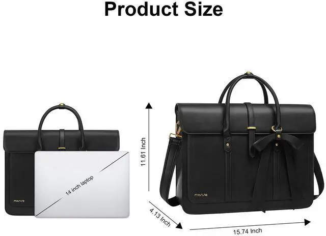 MOSISO Laptop Bag for Women, 13-14 inch PU Leather Laptop Shoulder Bags Convertible Backpack, 13.3 inch Messenger Bags Casual Handbag Work Briefcase Travel Computer Bag with Bowknot, Black