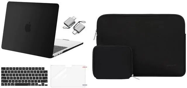 MOSISO Compatible with MacBook Air 13.6 inch Case 2022 Release A2681 M2, Neoprene Sleeve Bag with Small Case&Plastic Hard Case&Keyboard Cover&Screen Protector&Type C Adapter 2 Pack, Black