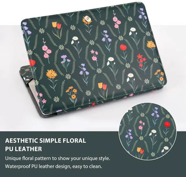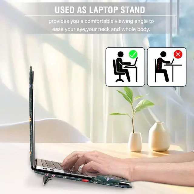 WARNING: This case is NOT compatible with other model laptops. ^^ Protective case cover with shock-absorbing features. All device features are accessible through cut-outs and openings. Magnetic closure design make sure your laptop securely in place. ^^ Made of waterproof aesthetic simple floral PU leather material. Simple style portfolio stand case cover with clear straps at the top corners. Won't block your screen. ^^ Unique protective design allows operating your laptop freely without removing the case.