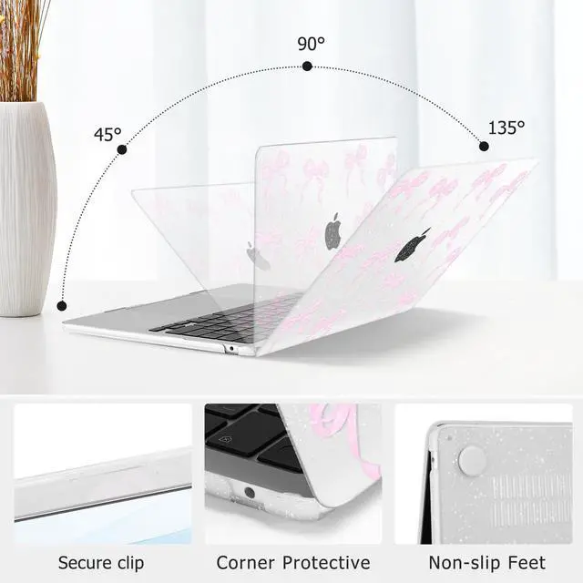 ^^ WARNING: This case is NOT compatible with other model laptops. Please kindly check the model number "Axxxx" on the back of the laptop before purchase, make sure you choose the exact same model number as the listing title stated "A3240" or "A3113" or "A2681" that be compatible with MacBook Air M4 13 inch case & compatible with MacBook Air M3 13 inch case and compatible with MacBook Air M2 13 inch case. ^^ NO Cut Out design. Fully vented for heat disbursement, fully access to all buttons and features. Totally removable, easy to put on and take off that can protect your laptop from scrapes and scratches. ^^ Ribbons bows sparkly glitter case dimension: 12 x 8.5 x 0.46 inch, compatible with MacBook Air M2 case 13 inch, compatible with MacBook Air M3 case 13 inch, compatible with MacBook Air M4 case 13 inch with liquid retina display
