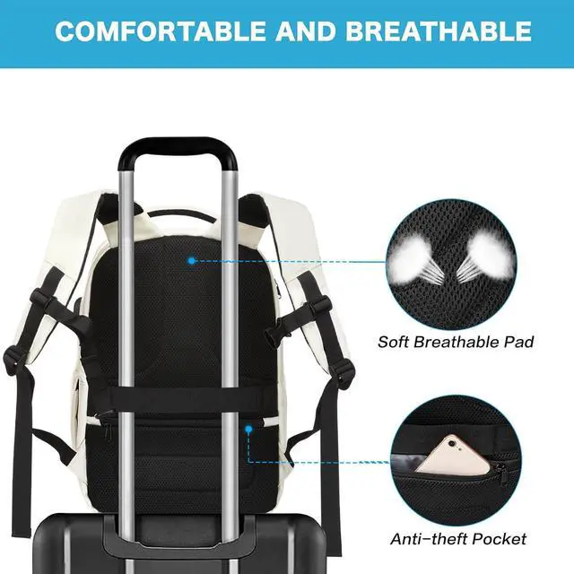 Luggage Strap: With built in USB charging port outside and built in charging cable inside, this backpack offers you a convenient way to charge your phone while walking. Please noted that this backpack doesn't power itself, USB charging port only offers an easy access to charging device. Back luggage strap allows backpack to slide over the luggage tube, secure your backpack in place, provides a convenient way to carry the backpack and release your shoulder.