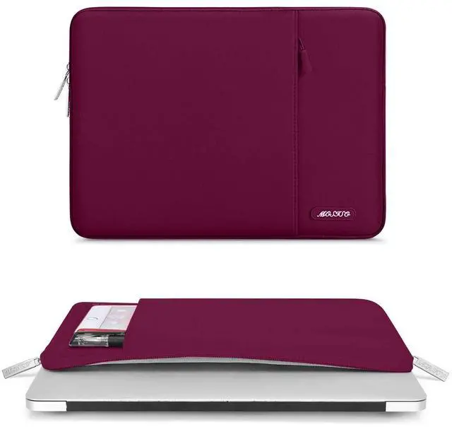 MOSISO Laptop Case 16 inch, 15-15.6 inch Laptop Sleeve Compatible with MacBook Pro 16 M4 M3 M2 M1, HP Acer Dell Lenovo ASUS Notebook, Polyester Vertical Computer Sleeve Bag with Pocket, Wine Red