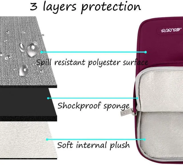 Features a polyester foam padding layer and fluffy fleece fabric lining for bump and shock absorption and protection of your device against bump, shock and accidental scratches.