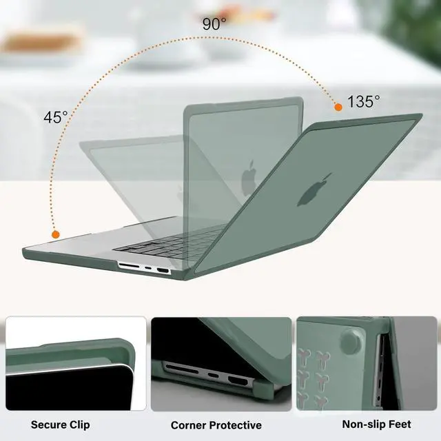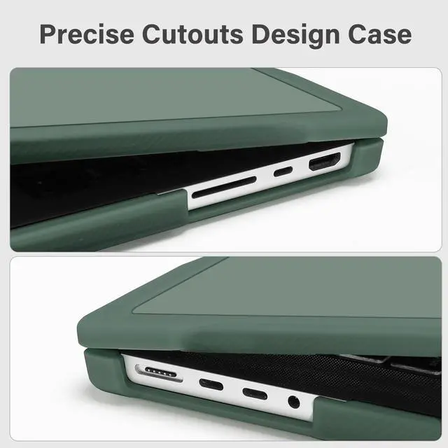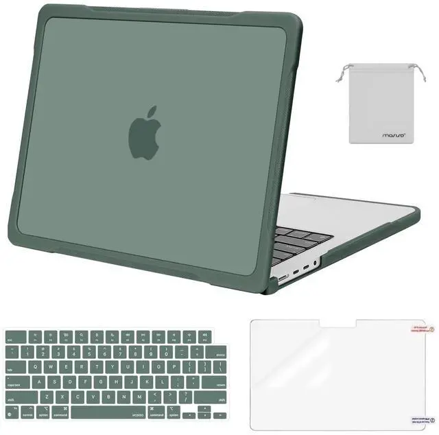 Designed ONLY to be compatible with MacBook Pro 14 inch cover 2025 2024 2023 2023 2021 Release M5 / M4 Max / M4 Pro / M4 / M3 Pro / M3 Max / M3 / M2 Pro / M2 Max / M1 Pro / M1 Max Chip with Liquid Retina XDR Display & Touch ID (models: A3434 & A3112 & A3185 & A3401 & A2918 & A2992 & A2779 & A2442). ^^ Please kindly check the model number "Axxxx" on the back of the laptop before your purchase, make sure you choose the exact same model number as the listing title stated "A3434" or "A3112" or "A3185" or "A3401" or "A2918" or "A2992" or "A2779" or "A2442" that compatible with MacBook Pro M5 14 inch case, compatible with MacBook Pro M4 14 inch case, compatible with MacBook Pro M3 14 inch case, compatible with MacBook Pro M2 14 inch case and compatible with MacBook Pro M1 14 inch case. ^^ NO Cut Out design, semi-transparent case allows logo to shinne through. Fully vented for heat disbursement, fully access to all buttons and features. Totally removable, easy to put on and take off. Matte polycarbonate and TPU frame bumper material offers all-around protection, protect your laptop from scrapes and scratches. ^^ Soft TPU bumper plastic anti-scratch case dimension: 12.48 x 8.93 x 0.62 inch, compatible with MacBook Pro 14 in case M5 A3434 / M4 A3112 A3185 A3401 / M3 A2918 A2992 / M2 A2779 / M1 A2442 Pro / Max Chip with Liquid Retina XDR Display & Touch ID with dimension: 12.31 x 8.71 x 0.61 inch (2025 2024 2023 2022 2021 Released). ^^ Including matching color keyboard cover skin & screen protector to protect your keyboard & screen against spills. The small storage bag keeps mouse and earphone well-organized.