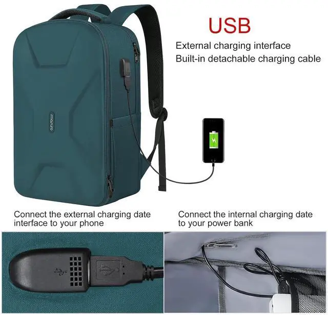 Luggage Strap: With built in USB charging port outside and built in charging cable inside, this backpack offers you a convenient way to charge your phone while walking. Please noted that this backpack doesn't power itself, USB charging port only offers an easy access to charging device. Back luggage strap allows backpack to slide over the luggage tube, secure your backpack in place, provides a convenient way to carry the backpack and release your shoulder.