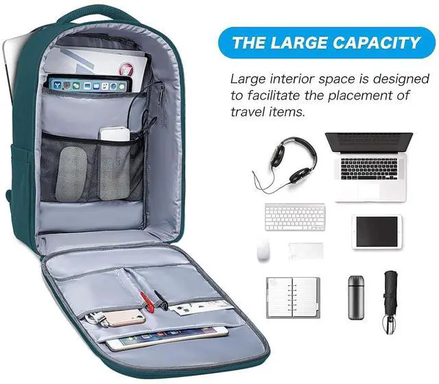 The computer compartment dimensions: 16.53 x 10.24 inch (L x W). The extra internal pockets can organize your pens, phone and notobooks. The backpack provides a thick padded foam section for your laptop, that protect your laptop against accidental impacts. Compatible with Notebook Computers 11- 11.6 inch, 12, 13- 13.3 inch, 14 inch, 15- 15.6 inch and up to 16 inch; ^^ USB Charging Port and