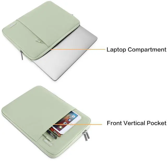 MOSISO Laptop Case 16 inch, 15-15.6 inch Laptop Sleeve Compatible with MacBook Pro 16 M4 M3 M2 M1, HP Acer Dell Lenovo ASUS Notebook, Polyester Vertical Computer Sleeve Bag with Pocket, Sage Green