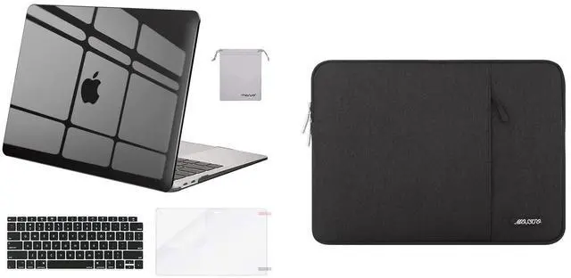 MOSISO Compatible with MacBook Air 13 inch Case 2022-2018 Release A2337 M1 A2179 A1932, Plastic Hard Case&Vertical Sleeve Bag with Pocket&Keyboard Cover&Screen Protector&Pouch, Crystal Black&Black