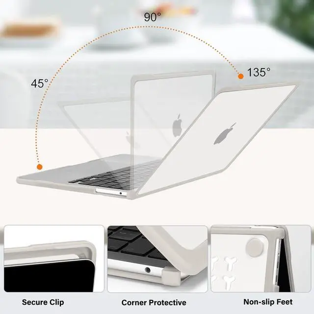 ^^ WARNING: This case is NOT compatible with other model laptops. Please kindly check the model number "Axxxx" on the back of the laptop before your purchase, make sure you choose the exact same model number as the listing title stated "A3240" or "A3113" or "A2681" that be compatible with MacBook Air 13 inch case M4 & compatible with MacBook Air 13 inch case M3 & compatible with MacBook Air 13 inch case M2. ^^ NO Cut Out design, semi-transparent case allows logo to shinne through. Fully vented for heat disbursement, fully access to all buttons and features. Totally removable, easy to put on and take off. Matte polycarbonate and TPU frame bumper material offers all-around protection, protect your laptop from scrapes and scratches. ^^ Soft TPU bumper plastic anti-scratch case dimension: 12 x 8.5 x 0.46 inch, compatible with MacBook Air M2 case, compatible with MacBook Air M3 case, compatible with MacBook Air M4 case with liquid retina display